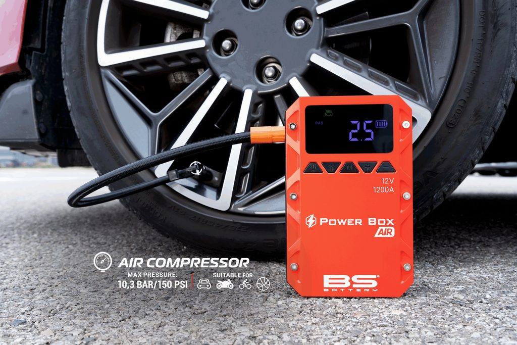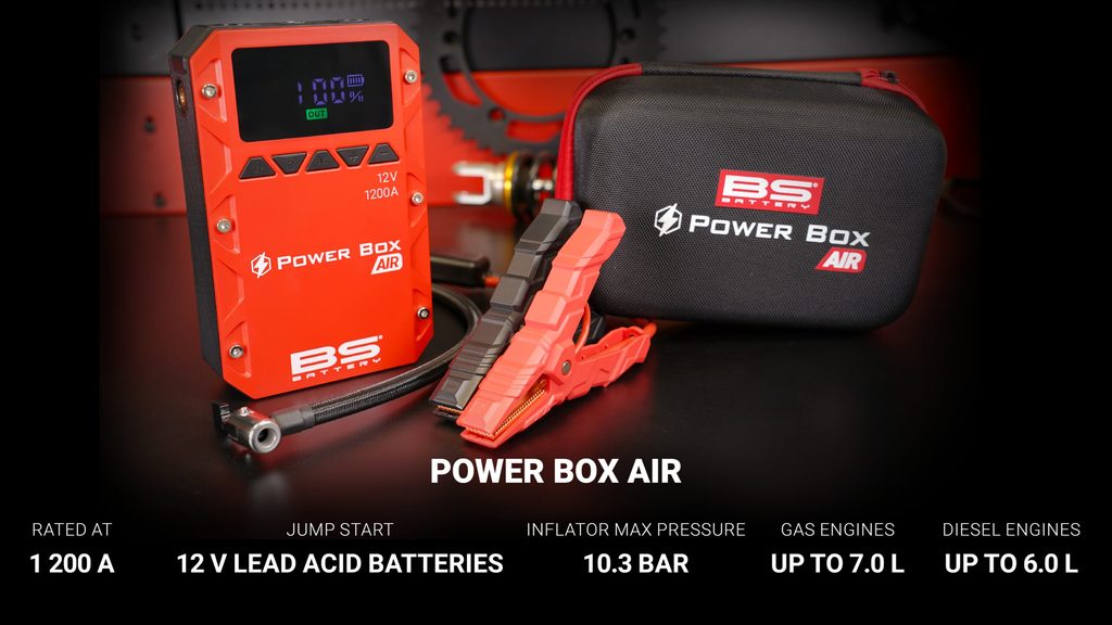 Seznamte se s Power Box AIR – více než jen startovací booster. Tento kompaktní a výkonný booster s proudem 1200 A nejen nastartuje 12V olověné baterie s až 20 starty na jedno nabití, ale je také vybaven integrovaným vzduchovým kompresorem s maximálním tlakem 10,3 bar / 150 PSI, vhodným pro pneumatiky, sportovní vybavení a další použití.