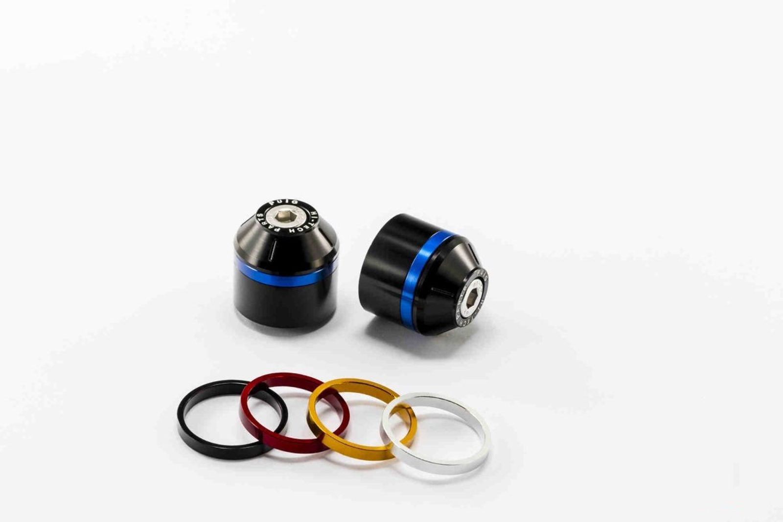 Závažíčka řidítek PUIG SHORT WITH RING 8018N včetně barevných kroužků The set includes 10 rings (2 each color): blue, black, gold, silver, red