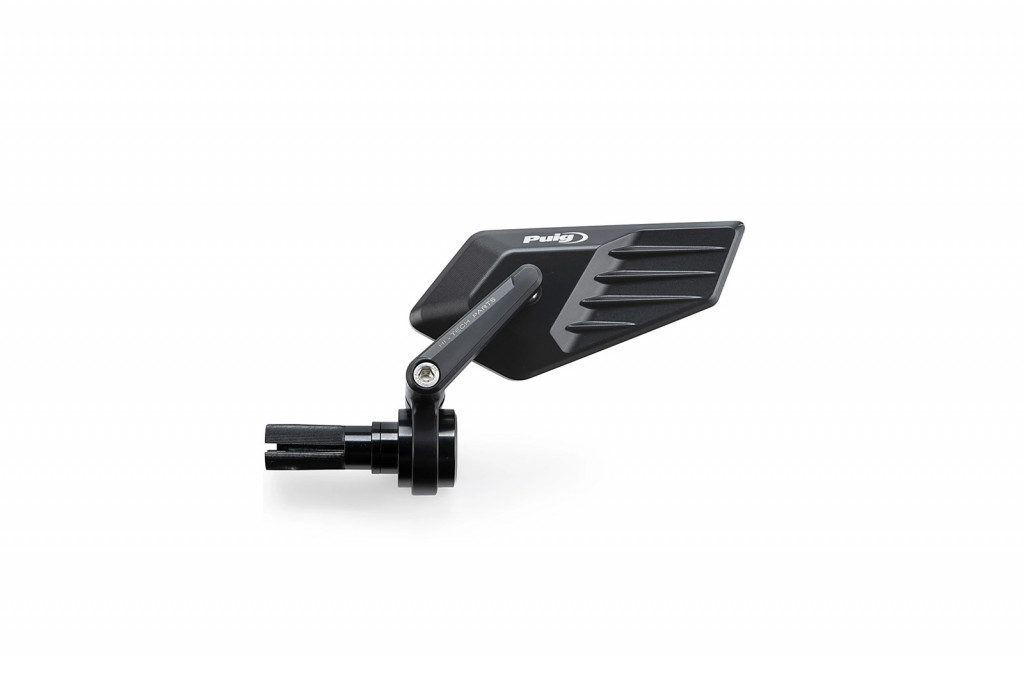 Neschválené zpětné zrcátko je navrženo k montáži na konec řídítek a nabízí funkční i estetické řešení, které se dokonale integruje s liniemi motocyklu. Ve srovnání s aktuálními modely přináší novou úroveň nastavení, která výrazně zlepšuje přizpůsobení individuálním preferencím jezdce. Tento systém umožňuje naklopení ramene zrcátka pro přesnější nastavení úhlu pohledu, přičemž zachovává možnost rotace vzhledem k řídítkům pro správnou orientaci. Konečné doladění je dosaženo prostřednictvím vysoce přesného kuličkového kloubu, který umožňuje jemné a bezpečné nastavení, zajišťuje stabilitu při jízdě a zabraňuje nežádoucím pohybům způsobeným vibracemi.